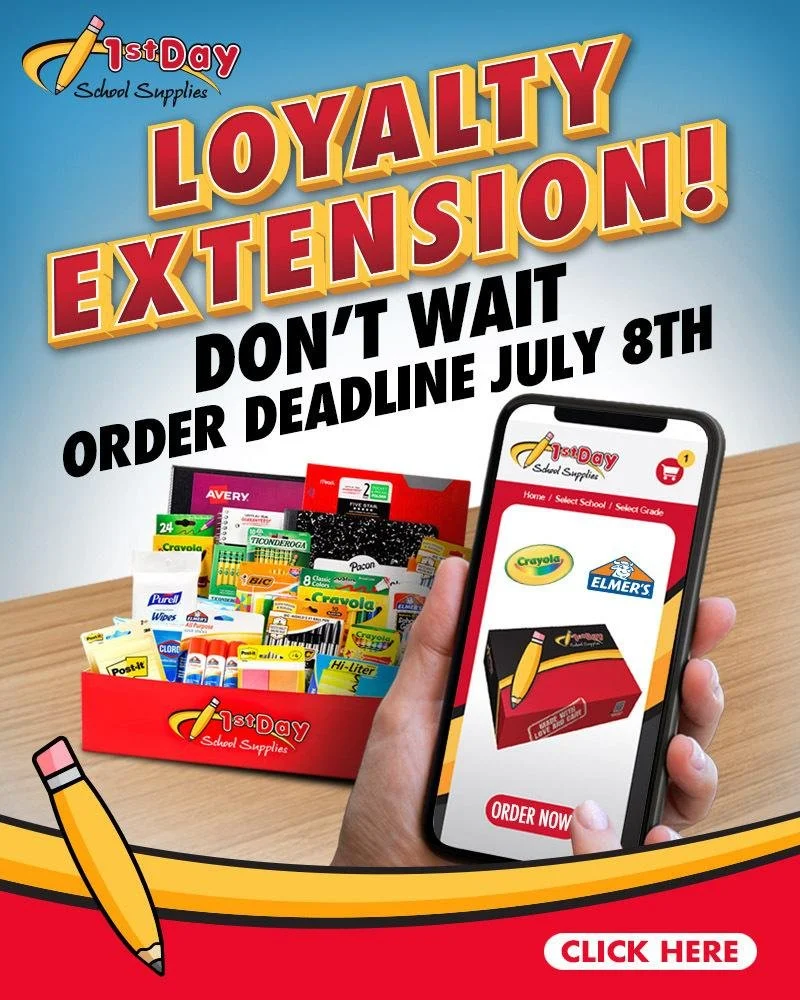 School Supply Kit orders for 2025-2026 are due July 8, 2025.